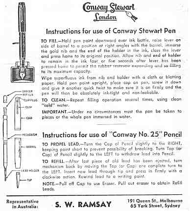 Three Instruction Sheets for Conway Stewart Writing Set Guarantees that indicate changes to the pencil designs and naming/numbering with time, allowing approximate dates of the sheets to be determined. Strangely the pen indicated on each sheet remains unchanged although the design is only really correct for the first sheet.