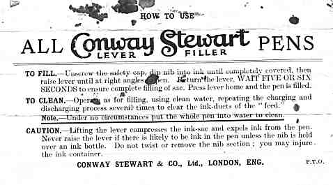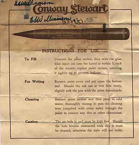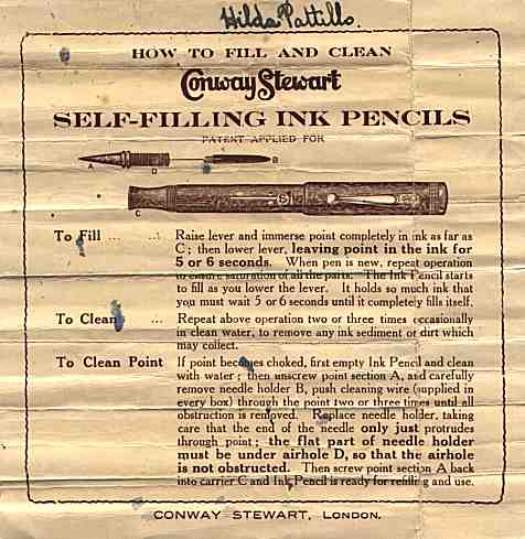 English Instruction sheets in approximate date order. Note the very subtle differences in the type set used in the cases of the pairs of Instruction sheets for the two types of Ink Pencil.